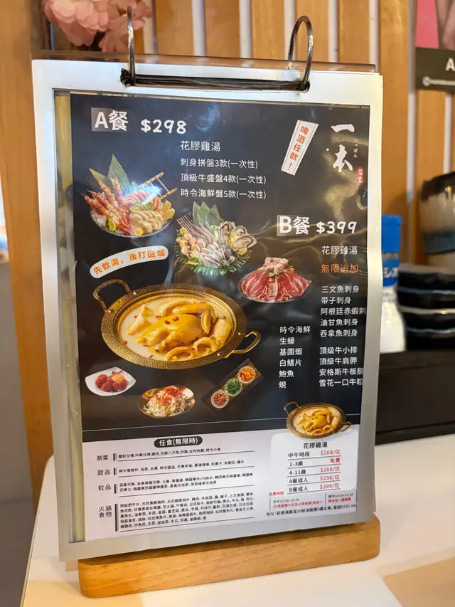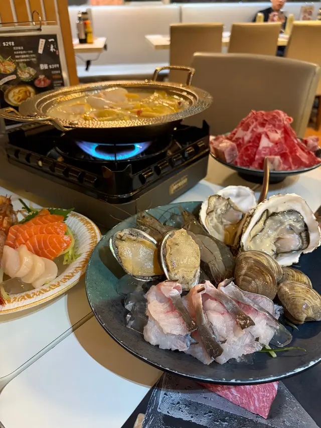 花膠雞火鍋放題 audrey118等級42025-11-27 關注 ⭐️花膠雞鍋湯底重點係冇落味精,後加雞肉同花膠滾起!⭐️刺身拼盤三款三文魚、帆立貝、赤蝦本身餐廳做日式料理,所以刺身質素唔錯⭐️頂級牛盛盤牛小排、牛肩胛、安格斯牛版鍵、雪花一口牛牛肉味濃郁,鮮嫩!⭐️時令海鮮拼盤包括白鱔片、大大隻生蠔、鮑魚、花甲、基圍蝦出面有自助區可以自己夾食材打邊爐,但係食完第一轉佢哋提供嘅嘢食已經幾飽,第一轉嘅嘢食都比較高質。餐廳晏晝做緊日式料理,夜晚就可以火鍋放題!📍一本食堂2以上食評乃用戶個人意見 , 並不代表OpenRice之觀點。讚好分享花膠雞火鍋放題 一本食堂 https://s.openrice.com/QrbT0eM5V00檢舉 張貼 評分4味道4環境4服務4衛生4抵食用餐途徑堂食