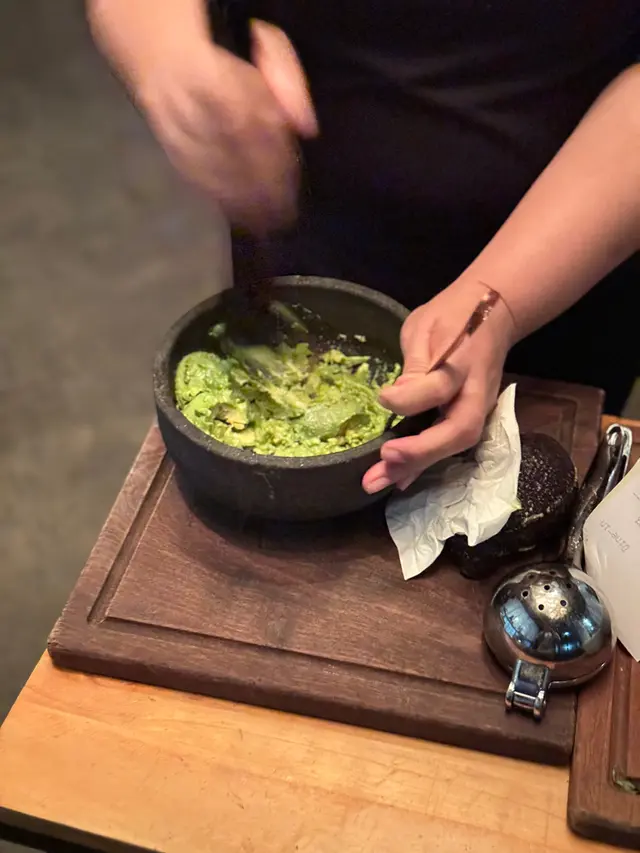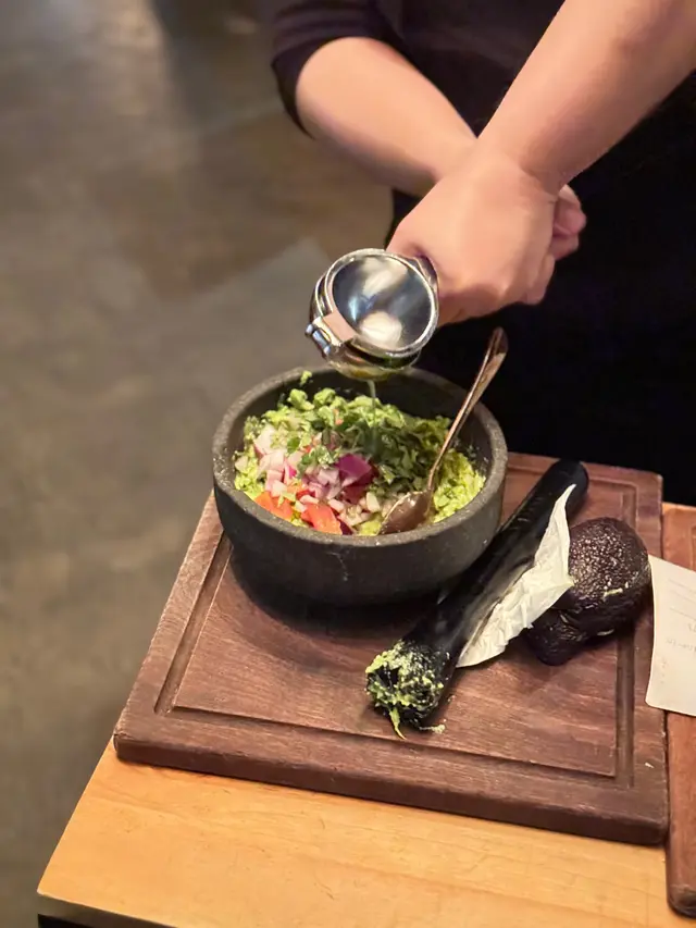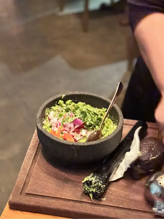 店員即席將兩個牛油果樁成果蓉,加番茄粒、紅洋蔥、芫荽、墨西哥辣椒、青檸汁,調味後會先俾你試味再上菜。牛油果腍但味道未夠濃,配料比較大粒,好難用墨西哥脆片一齊打撈食😂 Salsa Malcajets辣度十足,番茄味道淡啲。