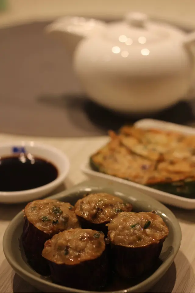 6. 煎酿茄子:茄子与肉的完美搭配,口感层次丰富。茄子里夹着肉馅,外皮煎得酥脆,咬一口下去,口感丰富,味道层次分明,真的太香了!