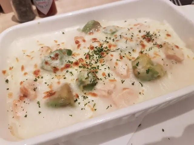 瀏覽餐牌,沒有許多素菜選擇,還是回歸咱家至愛的黑松露野菌忌簾意粉,至於老伴則點了個牛油果三文魚焗飯。