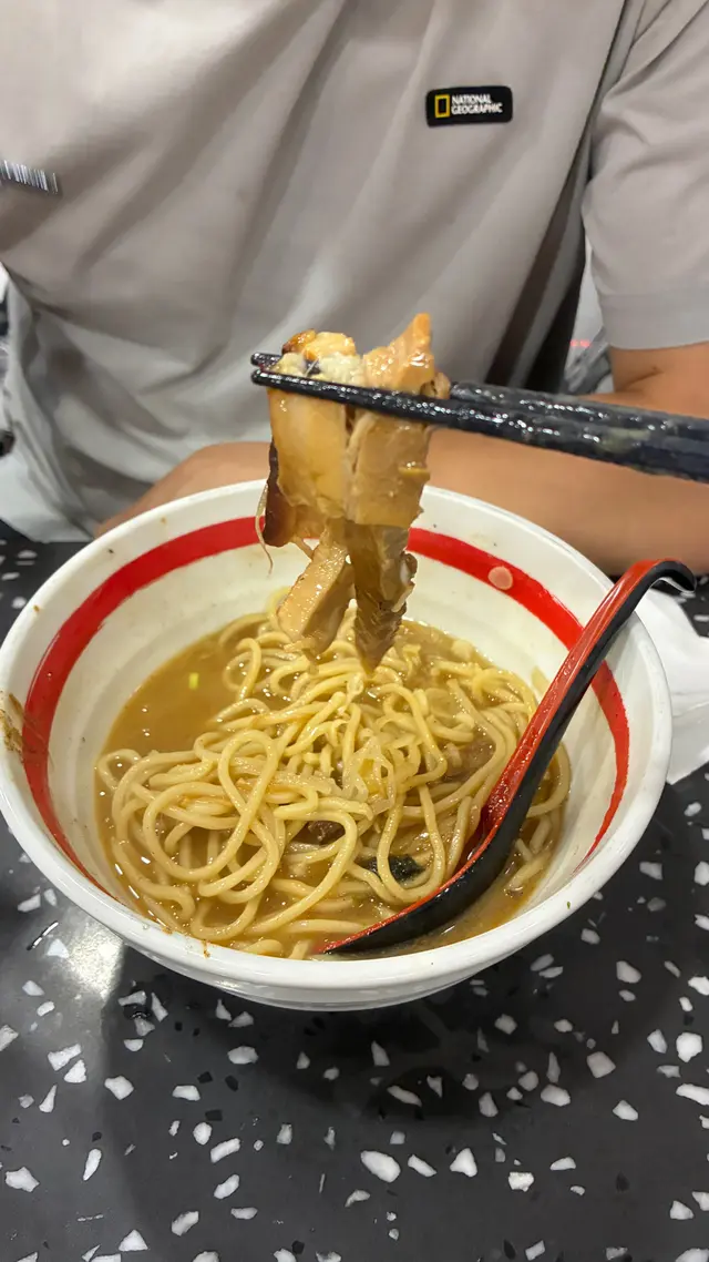 我哋一行二人,男朋友毫不猶豫就嗌咗佢哋嘅皇牌 *魚介豚骨拉麵特盛*。碗麵一上枱真係嚇親,塊叉燒真係超巨型,大到遮住半個碗!本身諗住夾起影張呃like相,點知佢肉質實在太稔滑,筷子一夾就應聲斷開,完全係入口即溶嘅級數,油脂甘香,瘦肉部份都好軟腍。湯底濃郁,充滿魚介鮮味同豚骨厚重感,但又唔會死鹹,飲完唔會口渴。麵條硬度適中,掛湯力強,每一啖都係享受。