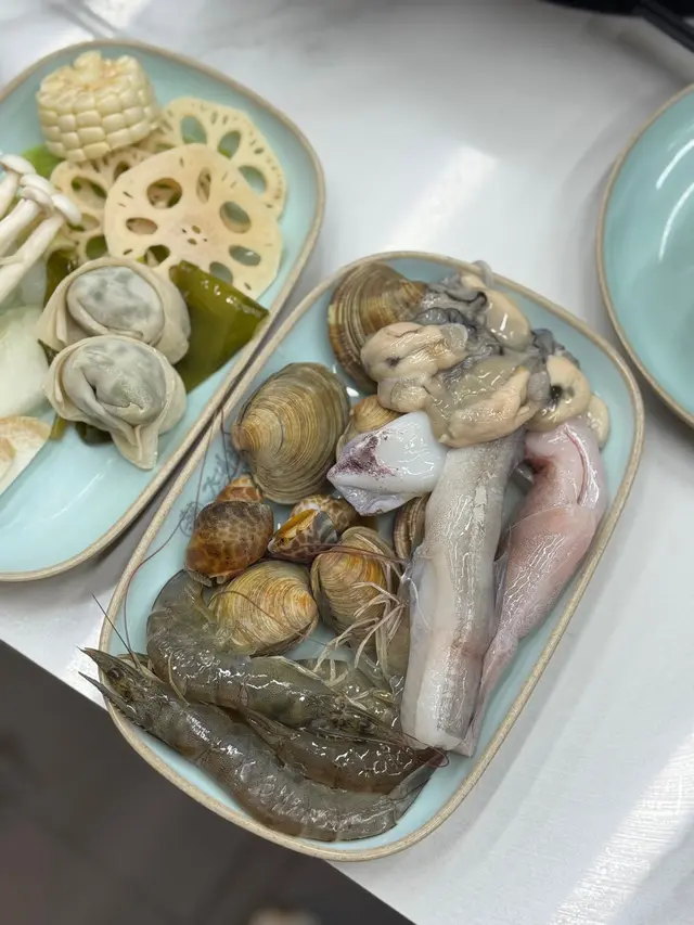 煮好的牛板腱入口即化,帶有濃厚的膠質感,吃起來滑潤且富有彈性。新鮮虎蝦,大大隻,多食幾隻都回本了。最喜歡其時令沙白,粒粒飽滿,仲有蠔仔🦪可供火鍋用,蠔仔淥完唔會縮水,仲係咁脹卜卜。最正係有九肚魚,可以慢慢蘸上醬汁,輕輕脫骨,魚肉滑嫩得很。點少得沙白!無沙又清甜。
