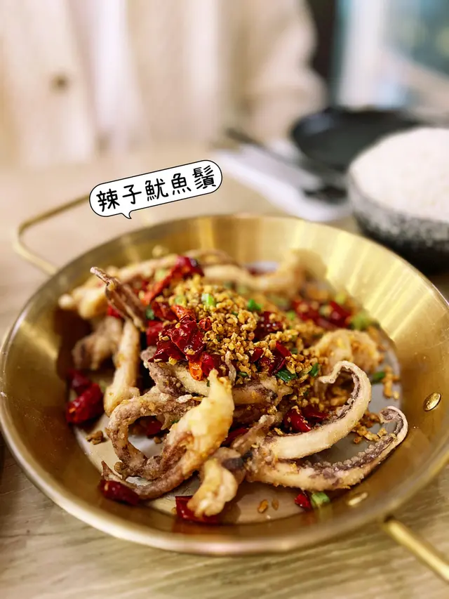 食一啖辣子魷魚鬚 再飲一啖芝士奶蓋茉莉綠茶剛剛中和到飲得非常滿足😌