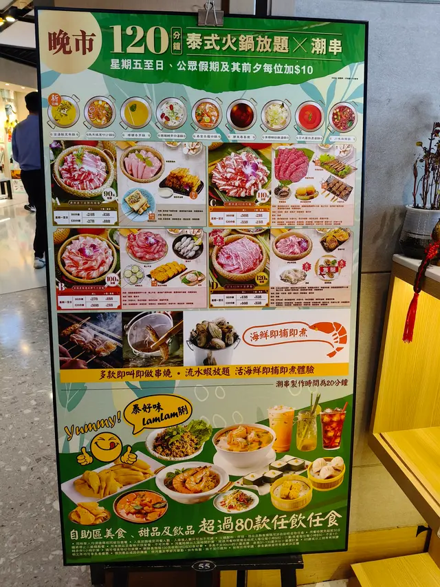 這次選了火鍋放題B餐「美國產極選肩胛牛小排餐」,120分鐘盡情享用肉質柔軟的牛小排,更有流水蝦放題、即叫即製串燒與泰式甜品,非常豐富。若偏好雞肉,「椰漿文昌雞鍋」選用海南名菜文昌雞,皮薄肉嫩,以椰漿烹煮更顯清甜,低脂高蛋白,適合追求健康的你。