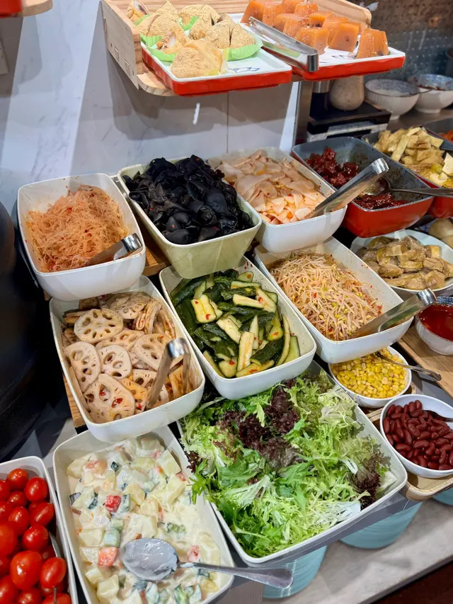 雖然是素食自助餐,但有齊粉面飯、炸物、甜品,多款精美蔬菜配搭小菜等等,仲有普洱茶和夏枯草任添,絕對值回票價同夠飽。