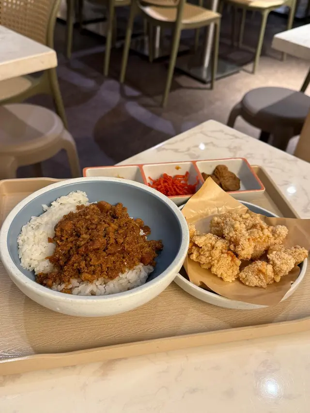 鹽酥雞🐓外皮酥脆,雞肉🐓鮮嫩多汁,伴有台式肉燥飯食,肉燥🐖醃得好夠味,撈埋一齊食,真係好有🇹🇼台灣風味。