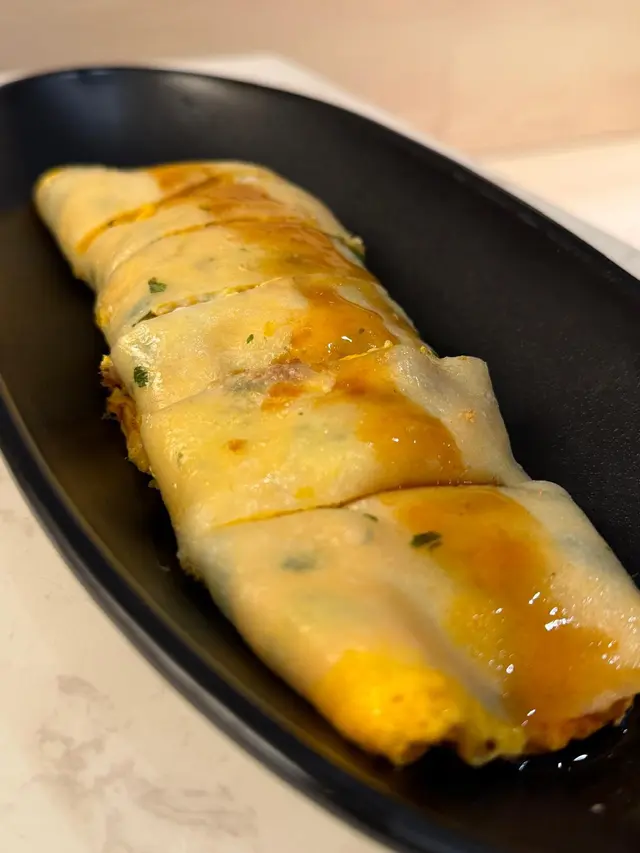 煎得金黃香脆,餡料結實不鬆散,蛋餅蛋香🍳味濃,配上芝士🧀同肉鬆,食落出奇地夾。