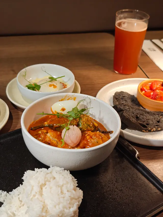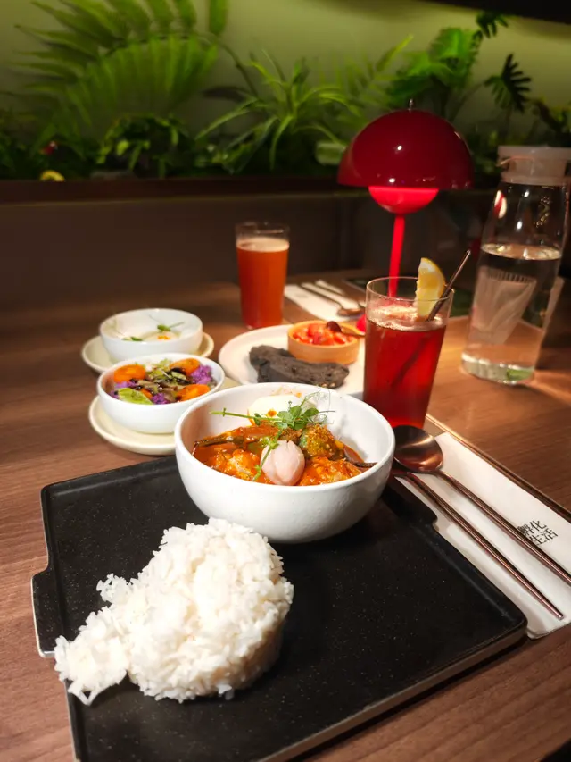紅咖喱有少少辛辣感,即使食唔到辣嘅朋友都可以試下。醬汁都算比較濃稠,撈飯一流。雞肉球份量都多,入晒咖喱味。另外仲有半隻熟蛋同荔枝果肉,食起上黎解一解油膩感