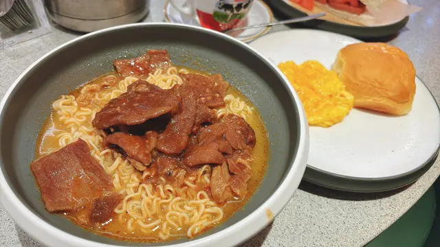 同時間,侍應員又點解送上咗我嘅懷舊沙嗲牛肉湯公仔麵。沙嗲湯富有甜香,同濃厚嘅沙嗲牛肉絕對係完美結合,飽滿嘅牛肉片食落口都好足料😍。