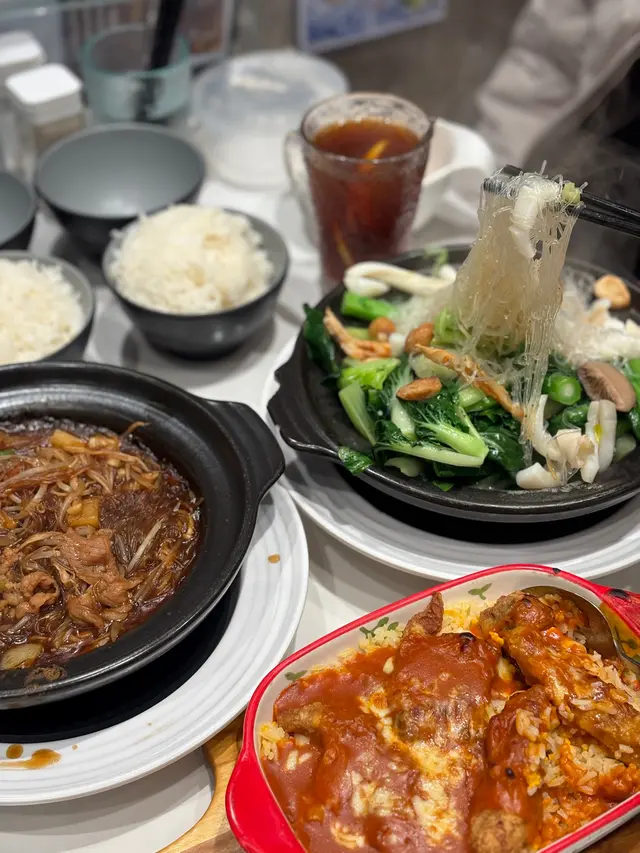 荷里活有間大冰室!大件夾抵食! godorochi等級42025-02-04343 瀏覽 關注 CP值是真的高,每個品項都相當慷慨,份量很大保證飽足!座位也比想像舒服,地方乾淨企理,整潔明亮。服務還不錯,不像一般茶記粗聲粗氣🍲沙嗲金菇肥牛煲72.00- 沙嗲入口香濃,巨量粉絲非常掛汁,還有滑順金菇,真的很下飯,而且很飽!🍲鮮魚湯海味粉絲雜菜煲85.00- 份量也有夠多!粉絲 菜心 白菜 🥬冬菇 魷魚🦑 蝦乾🍤 - 粉絲掛著鮮魚湯超好吃😋還有碗白飯1🐷芝士焗豬扒飯63.00- 有番茄🍅茄膏酸酸的很開胃🤤,飯是炒底,很滿足了😌以上食評乃用戶個人意見 , 並不代表OpenRice之觀點。讚好分享荷里活有間大冰室!大件夾抵食! 荷里活冰室 (青衣商場) https://s.openrice.com/QrbT0xW9Q00檢舉 張貼 評分4味道4環境4服務4衛生5抵食用餐途徑堂食