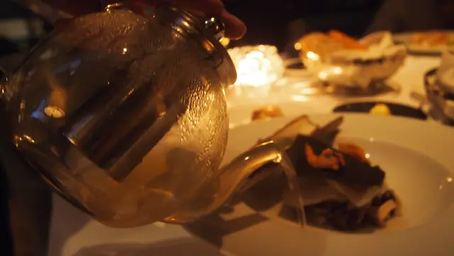 吃時將清澈的麵鼓湯注入,構圖上更見優雅。