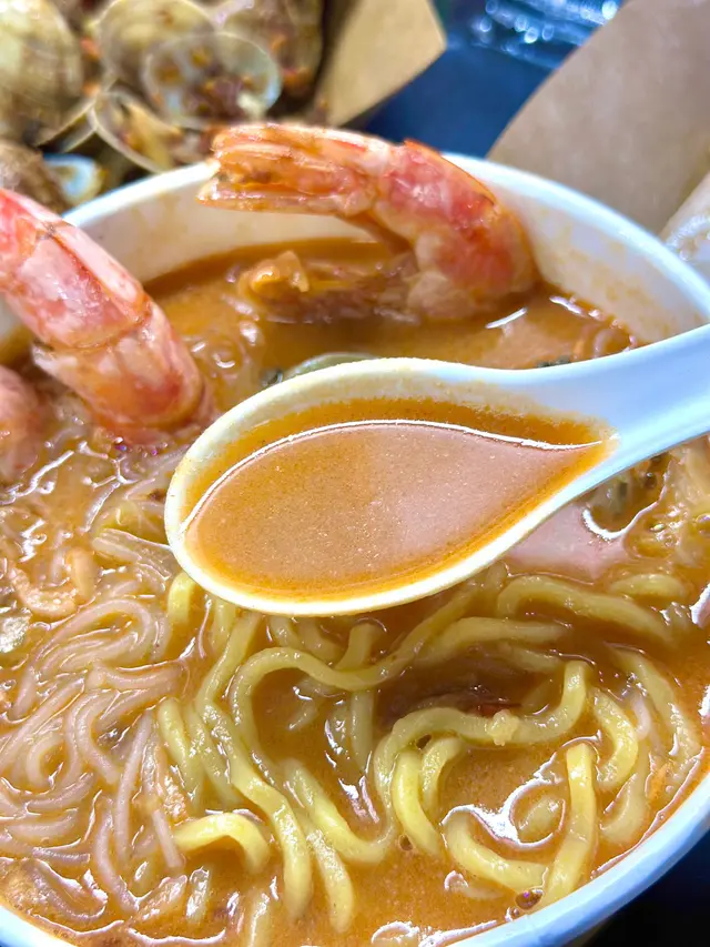 湯底濃郁極致,用大量蝦頭熬煮數小時,拉麵彈牙,索哂湯汁後更顯香濃,大蝦肉質爽彈,鮮味提升至巔峰😆