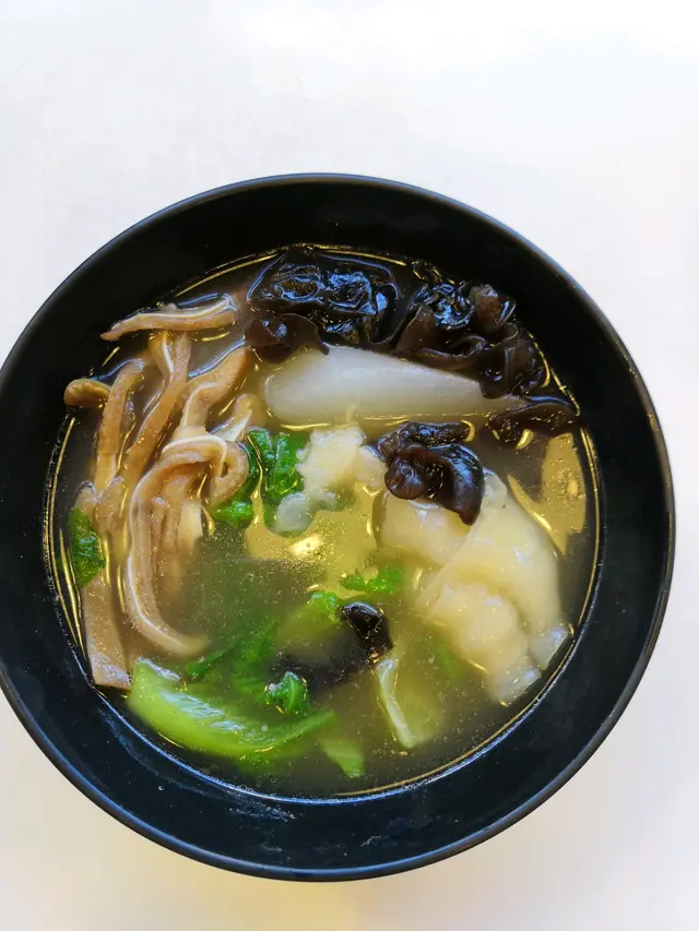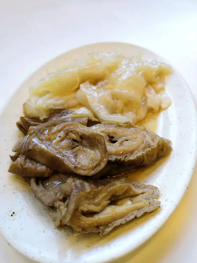 朋友就點了蠔皇花膠、蘿蔔、豬耳、小雲耳加瑞士汁,轉走粉麵轉菜底比較健康。蠔皇花膠爽身彈牙,微微淋身,蘿蔔夠甜,豬耳脆口及小雲耳都很爽脆,這樣配搭也不錯。