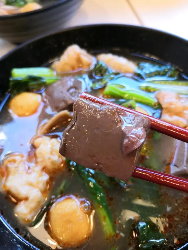 4餸麵售價$38,豬大腸、豬紅、咖喱魚蛋、齋麵筋是我個人喜歡選擇,加埋腩汁及鴻仔辣汁倍感惹味,為了減肥只好轉做菜底,轉走任何粉麵,麵店都可做到。