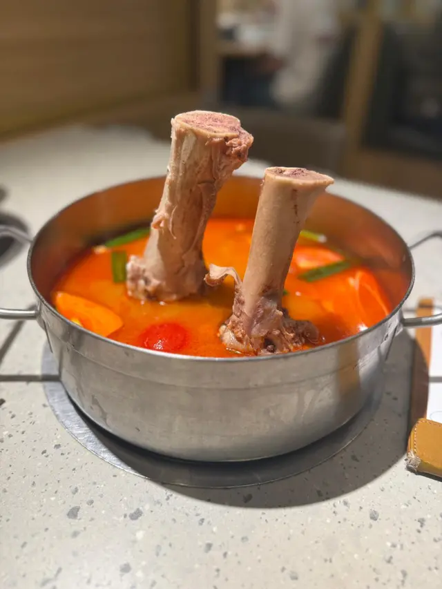 今次揀嘅蕃茄湯底都算清甜,最突出嘅係有兩條手臂咁長嘅豬骨夠晒味,仲要俾埋支飲管你啜埋啲骨髓😍儀式感滿分。