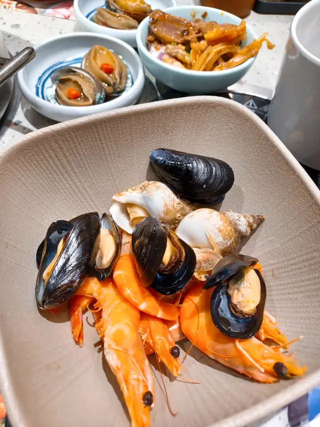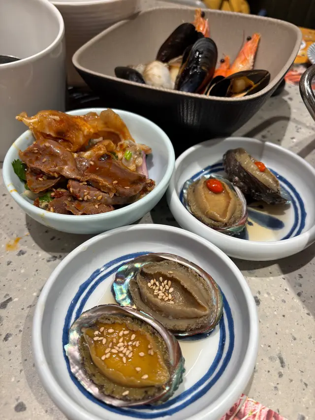 海鮮類好豐富,有桶蠔、磯煮鮑魚、花雕醉鮑魚、帆立貝、海蝦等,鐘意食魚既朋友仔可以試下白鱔片、脆肉鯇魚片、脆肉鯇魚腩、龍躉班頭腩、美顏花膠等等,私心磯煮鮑魚,爽口彈牙,好入味