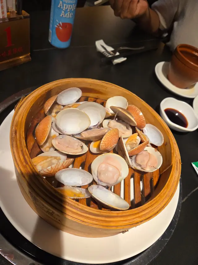 最正係個蒜蓉粉絲蒸扇貝,粉絲吸盡扇貝同蒜蓉嘅精華,一啖食落去,鮮味同蒜香一齊爆出嚟,個扇貝又厚肉又唔韌,正到呢!仲有啲鮑魚仔,蒸到啱啱好,爽口彈牙,完全唔會韌到似擦膠,點少少豉油已經鮮到不得了。隻隻海蝦蒸完之後,蝦殼一剥就甩,蝦肉實淨鮮甜,食到舔舔脷!佢連啲沙白蜆都冇失手,粒粒都爆開,冇沙兼鮮甜,飲埋殼入面嗰啲海水精華,真係鮮到冇朋友!