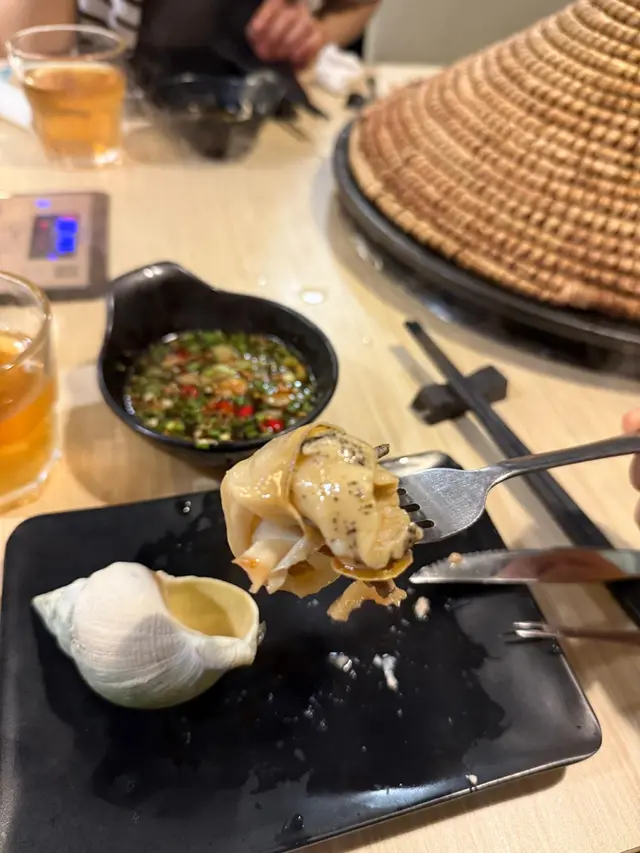 第一輪蒸鮑魚同蟶子,鮑魚蒸到剛熟,咬落去又彈牙又鮮甜,完全唔使點豉油!蟶子大大隻,蒸完啲海水精華全部留喺殼裡面,飲一啖湯再食肉,鮮味直頭爆燈!