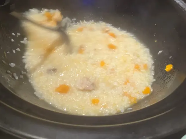 之後輪到「奄仔蟹」同「巨型扇貝」。隻蟹蒸完之後,揭開蟹蓋係金黃色嘅蟹膏,豐腴到不得了,食落去甘香濃郁。扇貝上面放咗啲粉絲同蒜蓉,蒸完之後扇貝嘅精華滴落去粉絲度,真係精華所在。最後個鍋底仲有集晒所有海鮮精華嘅粥底,飲一啖,成個海洋嘅鮮甜都喺晒個口裡面,為今餐畫上完美句號。