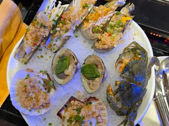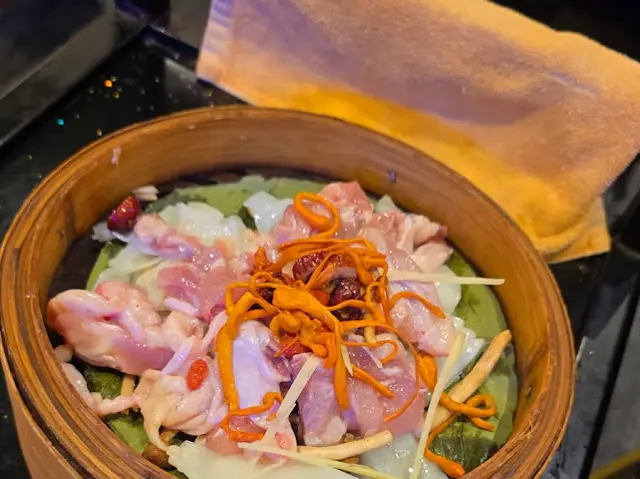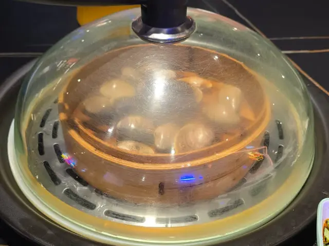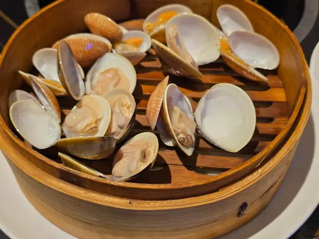 第一輪蒸嘅係「蒜蓉開邊龍蝦」同「鮮活鮑魚」。龍蝦一上枱已經氣勢十足,鋪滿金銀蒜蓉。計時器一響,打開鍋蓋那陣蒜香同蒸氣一齊湧出嚟,真係未食先流口水!龍蝦肉蒸得啱啱好,結實彈牙,蒜蓉完全帶出咗龍蝦嘅鮮甜,而唔係蓋過佢。至於啲鮑魚,蒸完之後店員會幫手起埋殼,咬落去煙韌得嚟帶點軟糯,鮮味爆燈!