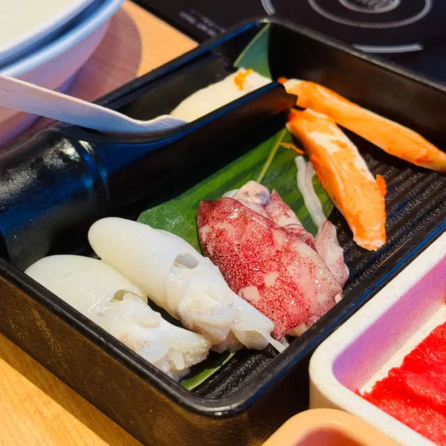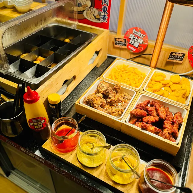 火鍋配料亦設有自助區,提供各式各樣嘅魚類、菜類,亦都有小食類例如關東煮,日式咖喱飯、炸物等等。