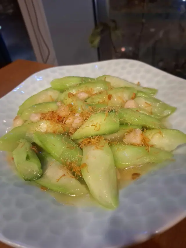 絲瓜🥒翠綠如玉,鮮貝飽滿潔白,浸於清澈雞湯中,視覺清新👀味道清甜溫潤,雞湯的醇厚與絲瓜🥒的清甜相互襯托,鮮貝更添海洋的鮮美。絲瓜👀入口爽脆,鮮貝柔嫩滑爽,湯汁溫潤順喉,屬出色之作💕