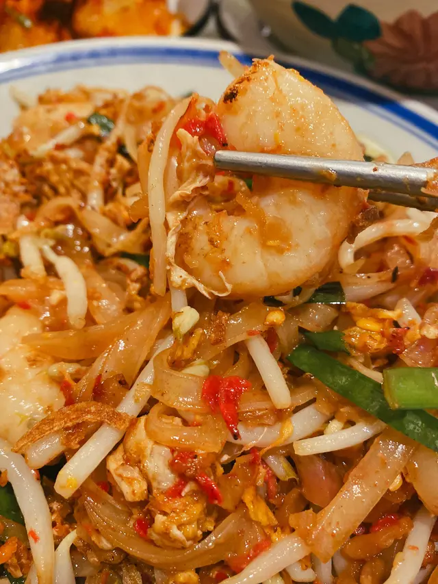沒錯,又是蝦!🦐🤣 是個偏辣的pad thai,鑊氣一般。有一兩啖的金邊粉未煮開,黏成一塊,硬的😓。