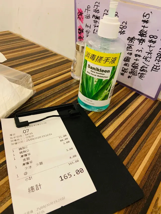 將軍澳天晉附近開左好多新餐廳,今日經過呢間茶餐廳,見價錢合宜又吾貴,仲有糖水食,一次過滿足兩個願望,就入左去一試店內好多卡位,坐得舒服!每張枱上仲細心附設左一枝消毒搓手液,呢個時勢真係窩心
