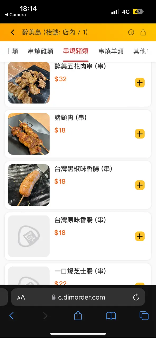 台灣腸的肉質緊實,卻又不失嫩滑,燒烤過程中的烤香與肉香相結合,這個我都重覆點了兩次