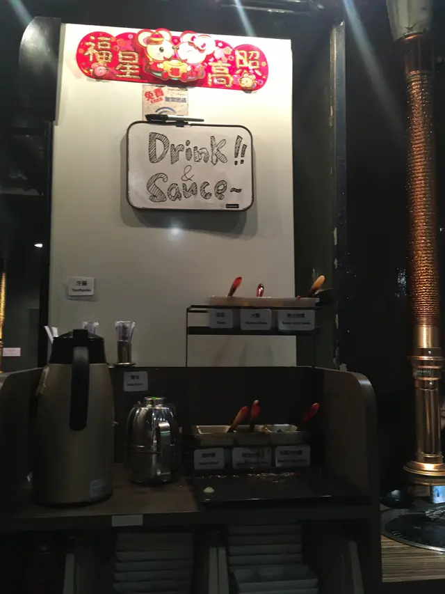 我地入坐時,店員送上前菜:泡菜、芽菜同海帶。也介紹了自助吧區(自助醬料和自助飲品)