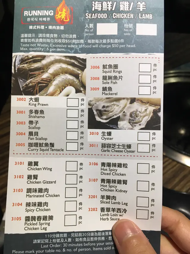 餐牌方面就真係豐富,有肉類、海鮮、菜和熟食。好正,不過注意每樣每次最多只可叫六件。