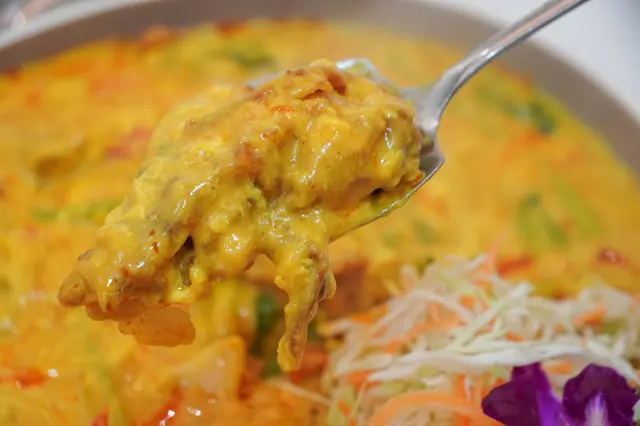軟殼蟹吸收了咖喱的味道非常惹味,我自己喜歡會配軟糯的薄餅來吃。