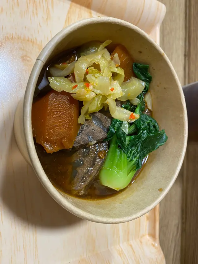 再嚟係牛肉麵,嚟到全部都係牛展,一舊牛肉都無,如果話牛展係牛肉既一部分都算係既,葱花全部換晒做咸菜,無咗半粒蛋,湯同麵就無咩點變。