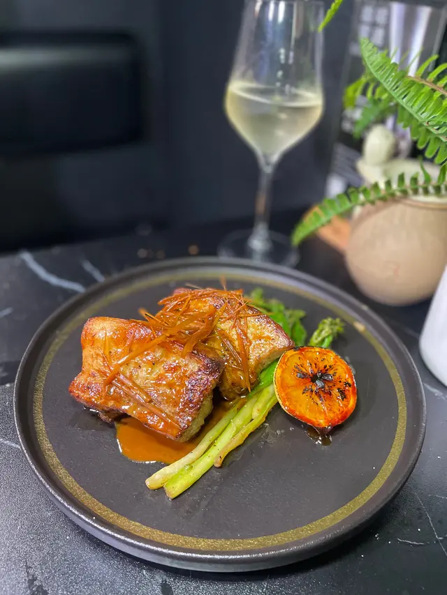 豬腩肉有兩大件,仲要超級厚!😍豬腩肉半肥瘦,成個表面沾滿香茅椰奶醬汁,金黃色好靚✨食落味道甜甜地,沾埋檸檬汁仲有果皮嘅香氣,可惜瘦肉部分較韌😳