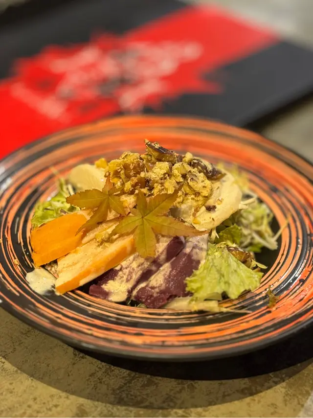 首先叫咗一份推介既甜薯香梨沙律,除咗黃色蕃薯仲有紫薯,仲有香梨同埋沙律菜,呢個沙律嘅特別之處係用咗酸乳酪取代普通嘅沙律醬,食落更加輕型健康