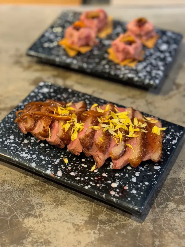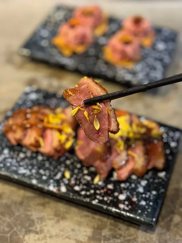 另一個必食之選係陳皮梅子燒鴨胸,一整塊鴨胸切成薄片,上面仲加咗啲菊花瓣做點綴,鴨胸肉肥瘦適中,油脂明顯,正