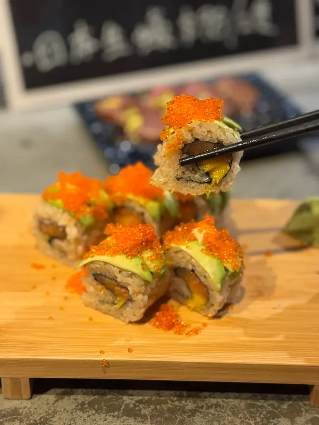 鍾意食三文魚,另外亦都叫咗一份香芒三文魚卷,餡料被飯包喺中間,中間主要就有芒果粒三文魚粒,芒果嘅清甜令到成個飯卷食落更加清新