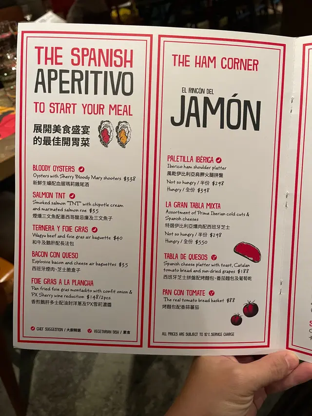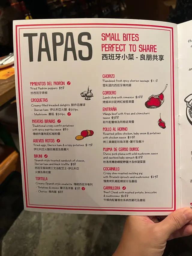 呢間餐廳係西營盤站A1出口行一分鐘就到既餐廳,十分方便。門面以紅色玻璃門和醒目的紅色招牌為主,搭配黑色鴿子圖案,凸顯西班牙風格。餐廳設計南歐風格,溫馨情調,工業風細節與暖色燈光、紅黑色的餐桌擺設感到熱情與活力,有打卡able的吧台區域同埋寵物友善的露台座位,休閒與精緻氛圍亦有異國情調,非常適合一班朋友、同事、情侶相聚暢談。