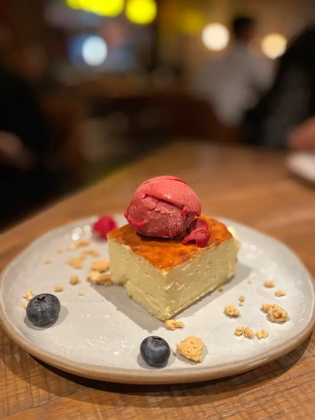 🍰巴斯克焦香芝士蛋糕配雜莓雪芭:口感超滑,芝士香濃,配酸酸甜甜的雜莓雪芭,力推!