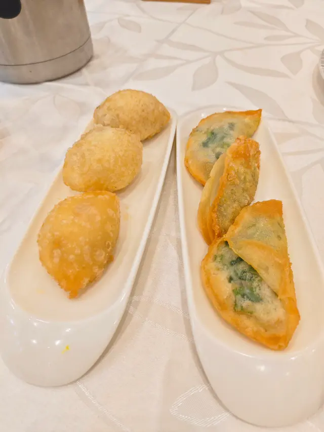 - 🥟 炸韭菜角:酥脆到「咔嚓」響!外皮金黃香脆,內餡韭菜鮮香多汁,熱辣辣食超開胃,根本停唔到口~