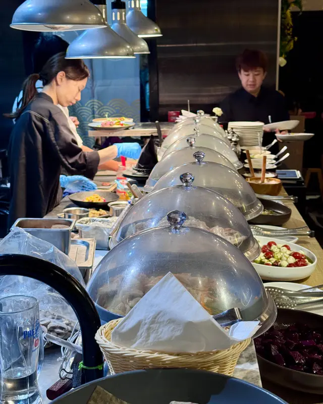 最吸睛係個自助沙律吧——翡翠螺、藍青口、煙三文魚任夾,仲有芝士冷盤陣,簡直係沙律控天堂!不過老實講,凍海鮮質素中規中矩,蝦同螺都算新鮮,但唔好期望有龍蝦鮑魚級數,當開胃前菜剛好合格👌