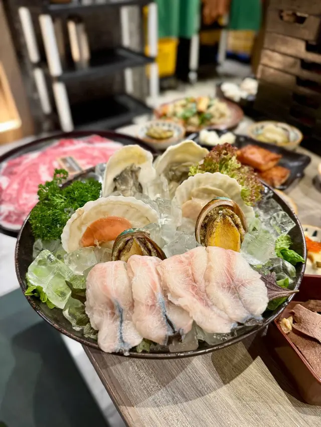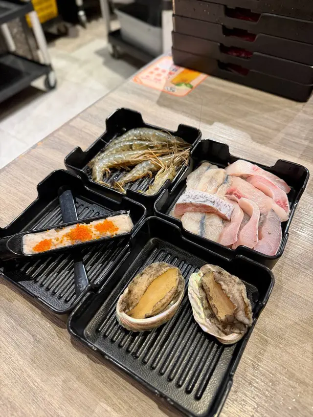 除咗海鮮拼盤嘅海鮮之外,仲可以用QR code任食其他海鮮,包括有鮮甜嘅鮑魚、台灣鱸魚片、蟹籽蝦滑、爽脆鱔片、脆肉鯇魚腩同埋鮮甜海蝦都有供應🦐 當中台灣嘅鱸魚片都幾爽彈。