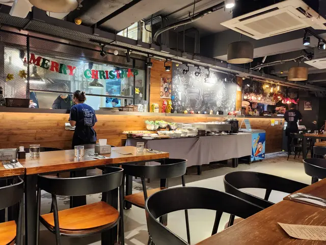 阿女揀咗個烏冬我食漢堡,主菜揀自己喜歡,有海膽炒韓式年糕、黑松露意粉、豬扒定食、雞扒漢堡等等。