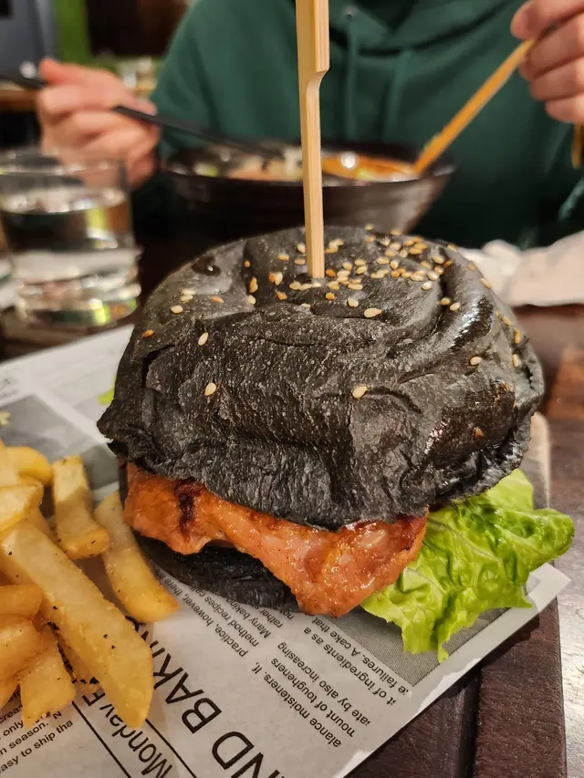 賣相好靚,食落美味,採用黑麵包更有特式,韓式醬汁雞扒大大件,薯條新鮮炸起,小心燙口。