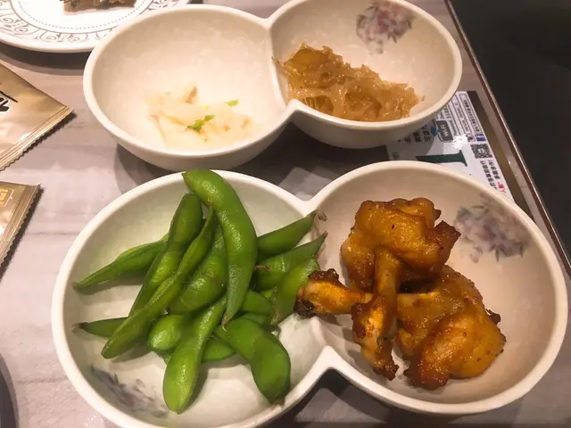 餐廳門口有個自助區,除左可以拎各式各樣既飲品,有一般既汽水外,更有鮮橙汁、熱荳奶~自助區有啲炸物同泰式小食睇落唔錯,我拎左啲炸雞鎚、炸魚片、泰式鳳爪、海蝥同枝豆~每樣食少少~