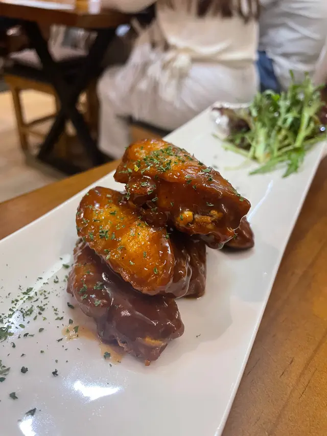 小食方面,佢哋個水牛城雞中翼 炸得香脆,水牛城醬酸酸甜甜辣辣,好啱味!🍗 餐湯微薑南瓜湯 暖胃又有少少薑香,非常特別。仲有打卡必點嘅 墨汁包多士,顏色夠晒型格!⚫