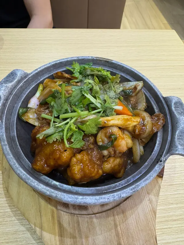 一上枱已經「滋滋聲」熱辣辣,個煲仲滾緊泡泡,香氣撲鼻!首先試咗件魚柳,外層炸到金黃色,索晒啲汁但又保持到脆口,入面嘅魚肉仲好滑溜,完全冇雪藏味。雞球都係驚喜之作,啖啖肉之餘仲好嫩滑,唔會煮到過火變「柴皮」。