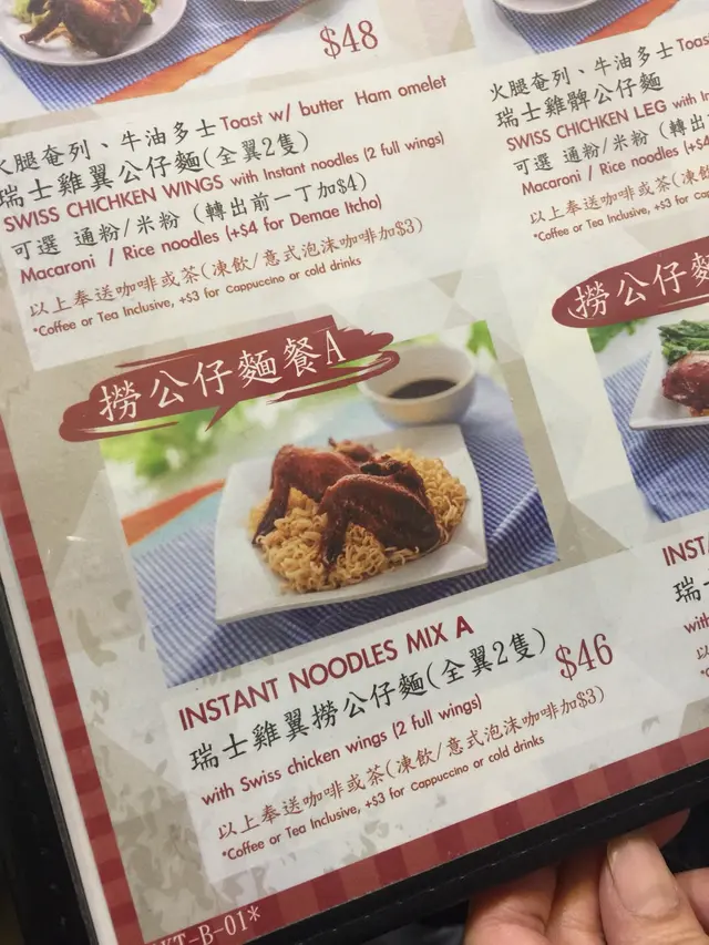觀塘都有瑞士,有瑞士咖啡室 skfoodtravelhk等級42018-04-12656 瀏覽 關注 好多知名食市開分店都開係觀塘,瑞士咖啡室都係其中一間,記過得好耐以前係中環食過一次,不過果時冇食雞翼,好似係食左咖央多,隨住時間,每間有名氣定冇名氣既餐廳,都只會係加價,而唔會減價,呢到都唔例外,個人覺得價錢真係好貴我點左招牌有雞翼既瑞士雞翼撈公仔麵 $46一個撈公要46蚊😳瑞士雞翼都幾入味,燜得幾焾,但2隻全翼加公仔麵就盛惠46大元,仲要係下午茶既價錢,個人覺得都有小小名過於實,可能隔幾個月食一次都可以接受既以上食評乃用戶個人意見 , 並不代表OpenRice之觀點。讚好分享觀塘都有瑞士,有瑞士咖啡室 瑞士咖啡室 https://s.openrice.com/QrbT0zeeN00檢舉 張貼 評分4味道4環境4服務4衛生3抵食用餐途徑堂食用餐時段下午茶