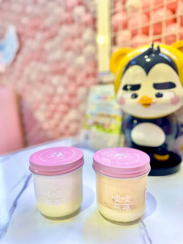 椰香雪燕奶凍用胖胖玻璃樽裝上,食落有香濃椰汁雪燕,雪燕分量好多😍,而且下面仲有好濃既牛奶凍,一齊食真係好好味😋。
