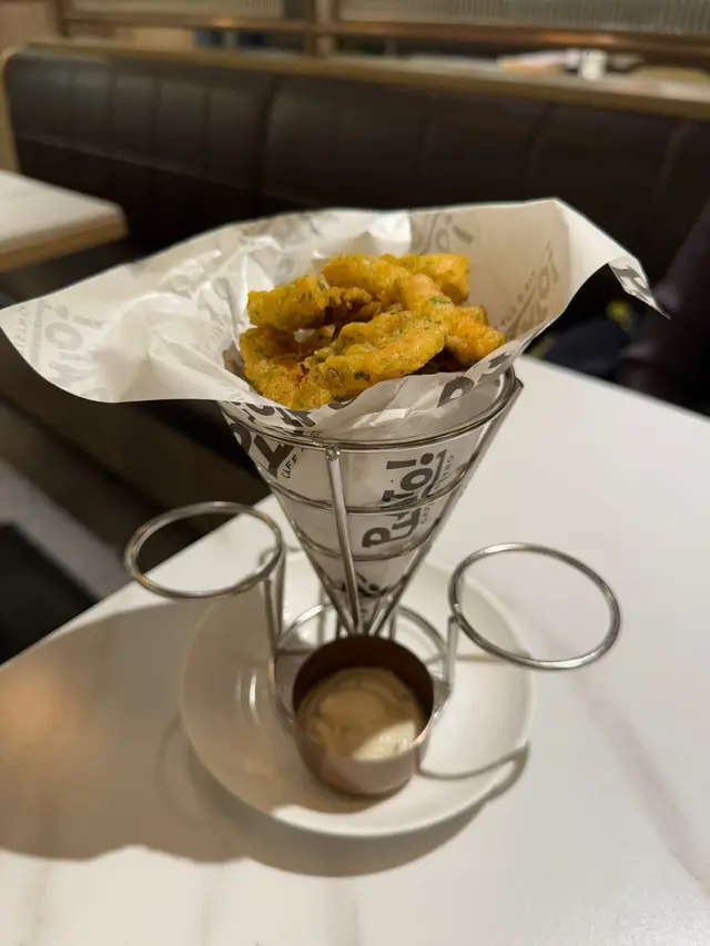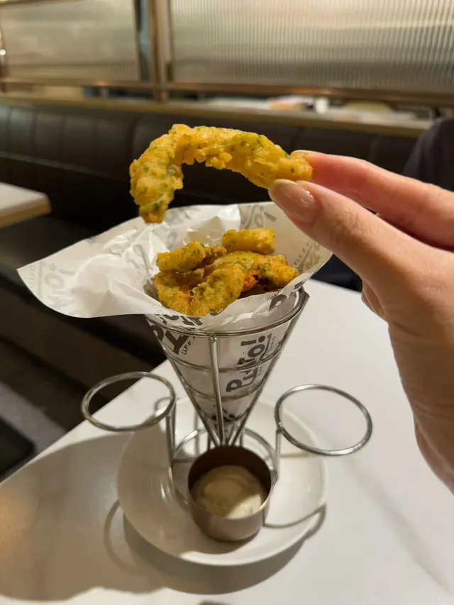 首先個天婦羅魷魚鬚一上枱就聞到好香炸粉味!外層炸到金黃色,咬落去喀嚓聲超酥脆,但入面嘅魷魚鬚依然保持軟嫩彈牙,完全唔會韌!最正係個秘製他他醬,帶少少檸檬酸香,同魷魚嘅鮮味超夾,食完成個口腔都唔會有油膩感,送啤酒真係一流!
